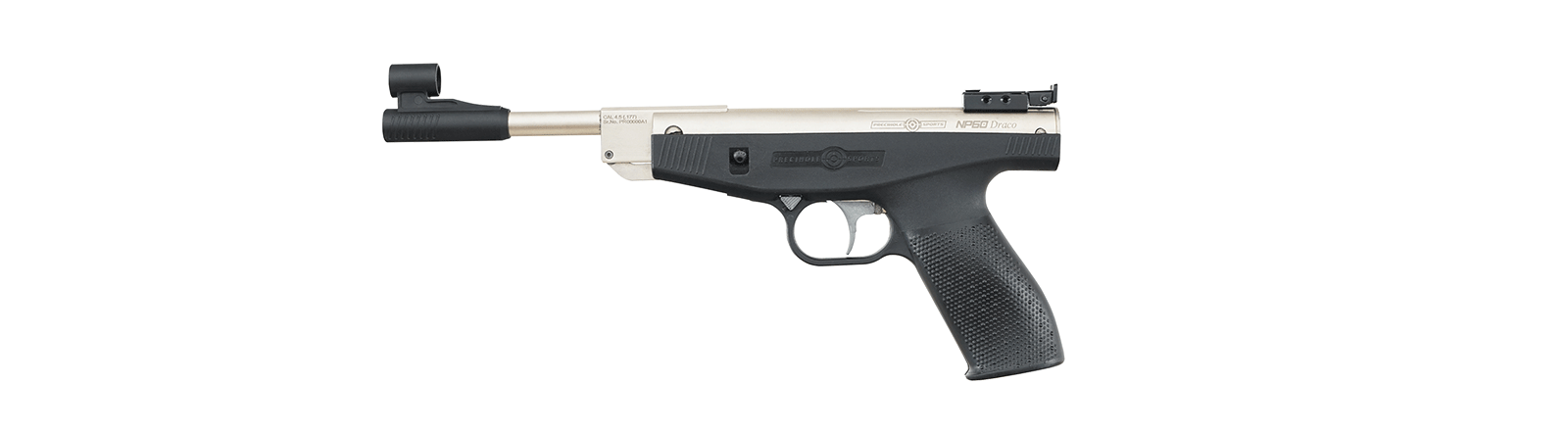 Perfect for Fun Shooting and Plinking, the NP60 Draco air pistol is packed with features that will give you the best shooting experience in a compact package. NP60 Draco is India’s 1st Nitro Spring pistol for smoothness & long life. It features a cross-bolt safety, integrated dovetail, multi-lever 2-stage trigger, adjustable metal sights, a rifled barrel, and an ergonomic grip, all without being heavy on your pocket. Whether you are a seasoned shooter or a beginner, you will enjoy shooting this pistol. India's no. 1 break barrel air pistol.